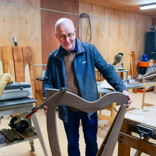 Seit 40 Jahren Erfahrung im Möbelbau fertigt Robert nun keltische Harfen.